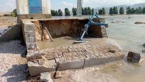 تخریب اتاقک چاه جدیدالاحداث آبفا در پی بارندگی‌های سیل‌آسا در زیر سد فداغ