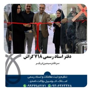 دفتر اسنادرسمی شماره ۷۱۸ گراش متعلق به بانوی فداغی سرکار خانم سیمین دریابر در شهر گراش افتتاح گردید.