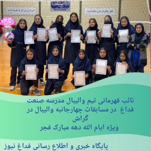 تیم والیبال دختران مدرسه صنعت متوسطه اول فداغ در مسابقات چهارجانبه شهرستان گراش شرکت و نائب قهرمان این مسابقات شد .