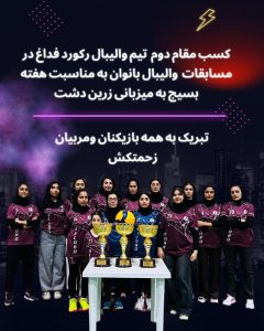 نایب‌قهرمانی تیم والیبال بانوان فداغ در مسابقات هشت‌جانبه زرین‌دشت